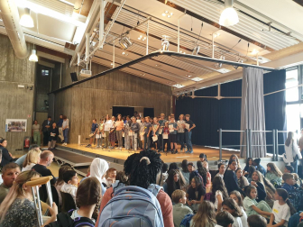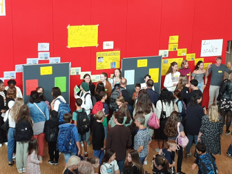 Neigt sich der Sommer dem Ende zu, ist es am Einstein-Gymnasium wieder so weit: Ein neuer Jahrgang tritt in die Fußstapfen der vergangenen Schüler-Generationen, um sich auf den Weg zum Abitur zu machen. So konnten in der ersten Schulwoche 107 neue Fünftklässler*innen in der vollbesetzten Aula des Schulzentrums begrüßt werden. Viele freuten sich darüber, bekannte Gesichter und Freunde aus der Grundschulzeit wieder zu treffen. Nicht nur für die neuen „Fünfer“ war es ein besonderer Moment. Auch für den Nachfolger von Dominikus Spinner an der Spitze des „Einsteins“ war es eine Premiere: Georg Pelzer begrüßte als neuer Schulleiter die jüngsten Mitglieder der Schulgemeinschaft sowie zahlreiche Eltern und Familienangehörige, die ihre Schützlinge begleiteten. Er warb um das Vertrauen in die Arbeit der Schule und des Kollegiums als auch in die Fähigkeiten der Kinder, ihren Weg zu finden. Umrahmt wurde der Empfang von zwei Liedern des Unterstufenchors unter der Leitung von Brigitte Klein, die mit „Willkommen, bienvenue“ aus dem Musical „Cabaret“ die Fünftklässler*innen einstimmten und mit „Fly, Linda, fly“ in die Obhut der neuen Klassenlehrer-Teams entließen. Diese führten ihre Klasse mit den Patinnen und Paten aus der 10. Klasse zum neuen Klassenzimmer. Bei ersten Kennenlernspielen wurde die Klassengemeinschaft bereits gefestigt und auch in den folgenden Tagen legte die Planung von Unterstufenberater Paul Härtlein Wert auf ein gutes Ankommen am „Einstein“. Eingebunden waren dabei auch erlebnispädagogische Einheiten und Kooperationsspiele, eine Schulhaus-Rallye und die Einführung des Klassenrats.