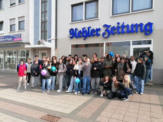 Einstein-Schulleiter Herr Pelzer hieß die Gruppe herzlich willkommen und wünschte einen interessanten Tag in Kehl. Zunächst hatten die französischen Schülerinnen und Schüler die Gelegenheit, in verschiedenen Unterrichtsstunden zu Gast zu sein und die "typisch deutsche" (?) Lernatmosphäre zu begutachten. Anschließend machten sich alle auf den Weg in die Innenstadt, wo sie sich anhand einer Brückenrallye - dankenswerterweise von Frau Combrouze zur Verfügung gestellt - über die Besonderheiten der Kehler Grenzstadt informieren konnten. Die restliche Zeit überbrückten sie mit der Erkundung verschiedener Einrichtungen, die zur Nahrungsaufnahme bestimmt sind. Insgesamt war es für alle ein fröhlicher Tag und wir freuen uns auf den Gegenbesuch im Mai.