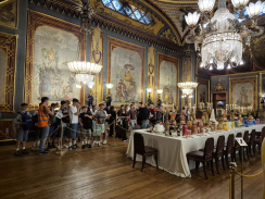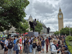 Auf den Spuren William des Eroberers erkundete die „Einstein“-Gruppe am Nachmittag auch Hastings, wobei die Dichte der Fahrgeschäfte und Karussells am Strand zu Zeiten der normannischen Eroberer im Jahr 1066 niedriger gewesen sein dürfte. Unter der Anhöhe von „Hastings Castle“ strömten die Schüler:innen die Promenade entlang und Richtung Altstadt, um die traditionelle Tauschaufgabe zu lösen. Dabei galt es ein süßes Mitbringsel aus Deutschland mit Einheimischen kreativ und in mehreren Durchläufen zu tauschen. Kondition, Teamfähigkeit und ein guter Überblick waren wiederum am folgenden Tag gefragt. Denn der Weg führte mitten ins Herz von London. Zwischen der Hin- und Rückfahrt mit der U-Bahn („The Tube“) stiegen die Einsteiner:innen aus dem ‚London Underground‘ empor und liefen auf der Suche nach den Royals eine Vielzahl von bekannten Sehenswürdigkeiten ab. Beginnend am Buckingham Palace und weiter zum ikonischen Wahrzeichen Big Ben überquerte die „Einstein“-Gruppe auch mehrmals die Themse, um z.B. auch zum Riesenrad „London Eye“ und später bis zur Tower Bridge zu gelangen. Zwischendurch gab es eine wohlverdiente Freizeit im Bezirk „Covent Garden“, wo zahlreiche Gastronomie wartete und Straßenkünstler Unterhaltung boten.