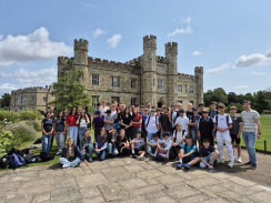 Bereits zum zweiten Mal in Folge ging der „Educational Stay“ der 8. Klassen des Einstein-Gymnasiums nicht in den Norden, sondern in den Süden Englands: Bexhill-on-Sea begrüßte die Schüler:innen und begleitenden Lehrkräfte mit langer Strandpromenade und grünblauem Meeresschimmern. Schon kurz nach der Ankunft im Küstenort wurden die deutschen Besucher:innen von ihren Gastfamilien abgeholt: Beim Abendessen und Transfer konnten die ersten Kontakte mit den englischen Muttersprachlern geknüpft und das Schulenglisch auf seine Tauglichkeit überprüft werden. Am nächsten Morgen sammelte der Reisebus die „Einsteiner:innen“ dann wieder an drei Treffpunkten ein, um zu Tagesausflügen zu starten. Der erste führte zum märchenhaften Wasserschloss Leeds Castle, das in den vergangenen Jahrhunderten Reiche und Mächtige anzog, heute vor allem aber Touristen. Auch die Schüler:innen spazierten durch die prächtigen Gartenanlagen und später durch die vornehmen und restaurierten Räumlichkeiten. Danach blieb noch Zeit, weitere Orte des weitläufigen Areals zu inspizieren, darunter verschiedene Vogelhäuser („Meet the Keeper“) und einen Abenteuerspielplatz. Gutgelaunt konnte man auch im aus 2400 Eiben angelegten Labyrinth verloren gehen („Take on the challenge of the Leeds Castle Maze!“).