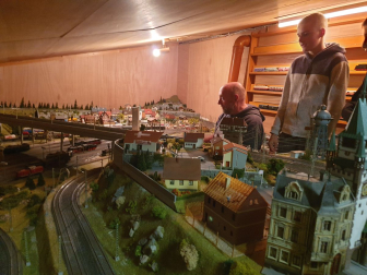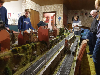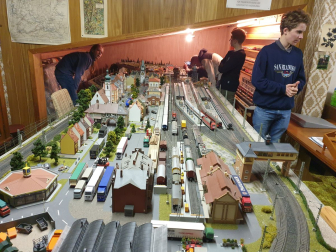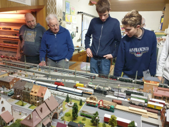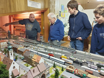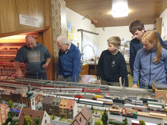 Die neue Modellbahn-Arbeitsgemeinschaft am Einstein-Gymnasium folgte vergangene Woche den Spuren eines historischen Bahnhofs. Weit mussten die Schüler mit ihrem AG-Leiter Friedrich Graffmann nicht vom „Einstein“ wegradeln, denn Sundheim war das Ziel: Bis ins Jahr 1959 verlief hier noch die Bahnstrecke der MEG („Mittelbadische Eisenbahnen AG“), die einst von Kehl bis nach Altenheim und weiter nach Lahr führte. Wie man sich den verschwundenen Bahnhof in Sundheim vorstellen muss, zeigte der Arbeitsgemeinschaft ein detailgetreues Modell im Schaufenster der Bäckerei „Hornung“. Drei Männer haben es mithilfe intensiver Recherchen rekonstruiert und in zahllosen Stunden akribisch im Maßstab 1:87 aufgebaut: Der leider bereits vor der Fertigstellung verstorbene Friedhelm Mündel sowie Karl Kirrmann und Karl Theodor Bender, die die dampfende und bimmelnde Lokalbahn noch aus jungen Jahren kennen. Beide Zeitzeugen führten die „Einsteiner“ vom Modell auch an den historischen Schauplatz: Nur einige Schritte von der Bäckerei entfernt befand sich einst das Bahnhofsgebäude, das Ende der 1960er Jahre abgerissen wurde. Am heutigen Dorfplatz in Sundheim noch zu sehen sind dafür die ehemalige Bahnhofsgaststätte sowie weitere angrenzende Häuser, die das Modell originalgetreu festhält. Gleise verlaufen hier natürlich schon längst nicht mehr und auch fahrende Züge können Fuhrwerken, Spaziergängern und Tieren (wie der damalige „Entenköpfer“) nicht mehr gefährlich werden. Für die jungen AG-Mitglieder traf es sich stattdessen gut, dass Karl Kirrmann sie und ihren Leiter zu sich nach Hause im Anschluss einlud. Dort zeigte er ihnen auf dem Speicher seine eigene Modellbahnanlage, deren Ausmaße bei den Gästen Staunen und Begeisterung auslösten. Entstanden ist die Anlage bereits vor über 50 Jahren und zugute kam dem eindrucksvollen Modell sicherlich, dass es Kirrmann als gelerntem Zimmermann nicht an Geschicklichkeit fehlte. Auch wenn das Ziel der AG eine digital angetriebene Modellbahn ist, stürzten sich die Teilnehmer schnell auf die elektrisch betriebenen Loks und Eisenbahnen. Diese brauchten zu Beginn etwas Unterstützung, um wieder in die Gänge zu kommen. Nach einigem Tüfteln an Kontakten und den Schaltungen konnten Haltesignale aufgehoben und Weichen verstellt werden. Jugendlicher Übermut führte allerdings noch dazu, dass ein Personenwagen in etwas zu rasanter Fahrt auf einen Tanklastzug auffuhr und diesen entgleisen ließ. Karl Kirrmann sah es gelassen und freute sich stattdessen darüber, bei Problemen mit der Elektronik seiner Bahn künftig Rat bei der AG einholen zu können. Die „Einsteiner“ erhielten im Gegenzug an diesem Nachmittag historische Einblicke und viel Inspiration für ihren eigenen Modellbahnbau. Für diesen sind die Weichen ebenfalls bereits gestellt: Nach wie vor freut sich die AG aber über Unterstützung in Form von Bastelmaterialien. Wer dieses sponsern will, kann sich gerne beim Gymnasium melden. Am Abend der offenen Tür Ende Februar wollen die Modellbahnbauer ihr Werk der Öffentlichkeit präsentieren.