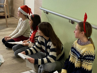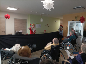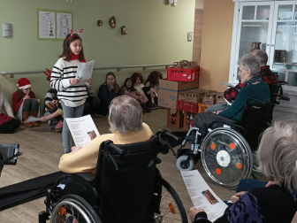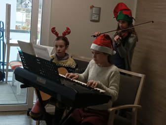 Ein Teil der Unterstufentheater-AG war in diesem Jahr zu Gast im Seniorenheim „Am Wasserturm“ und sorgte mit einem kleinen Programm für Weihnachtsstimmung unter den Bewohnern. Musikalisch eröffneten die Kinder den Nachmittag, performten Weihnachtswitze, trugen klassische Weihnachtsgedichte vor und spielten einen Märchensketch: „Aschenputtel hinterm Vorhang“ bot eine amüsante Variation des Märchens dar, bei der die Schauspieler*innen im Wechsel, sobald sie etwas sagten, hinter einem Vorhang auf- und im nächsten Moment auch gleich wieder abtauchten. So entstand ein zackiges Miteinander, das viele Lacher im Publikum erzeugte. Das Strahlen in den Gesichtern von Jung und Alt ist der beste Beweis dafür, dass die generationenübergreifenden Aktivitäten ein Gewinn für alle sind!