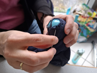 · Näharbeiten: Ob gerissene Nähte, ausgefranste Säume, durchlöcherte Strumpfhosen oder die Taschen der Trennwände für die Klassenarbeiten – an dieser Station wurde mit und ohne Nähmaschine ausgebessert.