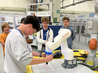 Am 8. Juli 2025 unternahm der NWT-Kurs der 9. Klasse in Begleitung von Herrn Maletz und Frau Börschig eine aufschlussreiche Exkursion zur Hochschule Offenburg. Der Besuch konzentrierte sich auf das spannende Thema Robotik und bot den Schülern einen direkten Einblick in diese zukunftsweisende Technologie. Nach einer prägnanten Einführung in die Grundlagen der Robotik folgte eine Führung durch das beeindruckende Labor, das eine Vielzahl moderner Roboterarme enthielt. Ein besonderes Highlight war die Möglichkeit für die Schüler, selbst Hand anzulegen. Unter Anleitung durften sie mithilfe eines Roboterarmes verschiedenste Aufgaben ausführen, darunter das präzise Umräumen von Gegenständen, das Schreiben (möglichst) sauberer Schriftzüge und sogar eine unterhaltsame Partie Jenga. Diese praktischen Erfahrungen brachten die Schüler näher an die faszinierende Welt der Robotik. Eine äußerst lohnenswerte Exkursion!