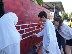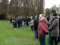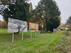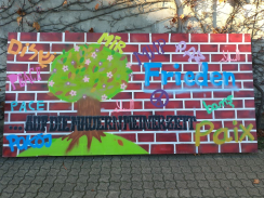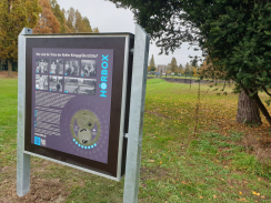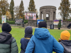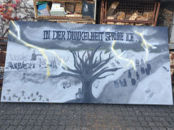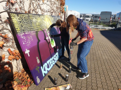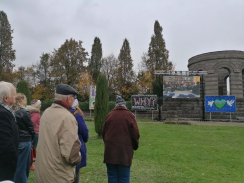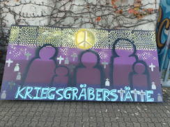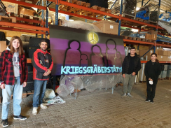 Seit dem Volkstrauertag 2021 arbeiten Mitglieder der Zeitzeugen-AG in unterschiedlichen Zusammensetzungen an der Umgestaltung der Kriegsgräberstätte in Kooperation mit der Stadt Kehl. Beim diesjährigen Volkstrauertag präsentierten sie drei neue Graffiti-Wände, die nun die Eingänge des Friedhofs säumen, und deuteten deren Friedensbotschaften und Symbolik. Zudem wurde eine neue Hörstation am zentralen Zugang der Kriegsgräberstätte eingeweiht. Hier kann man Erinnerungen von Angehörigen anhören, die von ihren verwandten Kriegstoten erzählen. Ebenso gibt es an dieser Station Beiträge über die Entstehung des Ortes sowie den Architekten des Friedhofes. Den ganzen bisherigen Prozess der Umgestaltung dokumentierte ein zweiter Filmbeitrag. Ihn könnt Ihr hier anschauen.
