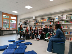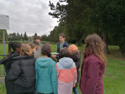 In den vergangenen Wochen hatten sich zehn Sechstklässler*innen intensiv mit dem Thema ‚Flucht und Krieg‘ auseinandergesetzt. Neben einem Besuch der Kriegsgräberstätte informierten sie sich über die Geschichte Kehls im Zweiten Weltkrieg und bereiteten eine Serie von Interviews mit eigenen Fragen vor: Von ihren Gesprächspartnern wollten sie z.B. erfahren, wie diese den Tag ihrer Flucht in Erinnerung behalten hatten, welche Gegenstände sie selbst mitnahmen auf ihrem Weg und welche Erlebnisse sie auf ihrer Flucht machen mussten. Mit der Unterstützung von Kameramann Lardjah Naba, der für die Pressestelle der Stadt Kehl arbeitet, führten die Schüler*innen im Anschluss mehrere Interviews durch. Vor ihren Elternhäusern in den 1940er Jahren standen so zwei ältere 90-jährige Zeitzeugen Rede und Antwort. Sie mussten am 23. November 1944 aus Kehl fliehen. Die Sechstklässler*innen interviewten aber auch Schüler*innen des „Einsteins“, die mit ihren Familien aus Syrien während des Bürgerkriegs bzw. aus der Ukraine in den letzten Jahren geflohen sind. Ihre berührenden Antworten wurden in einer Collage zusammengefasst: Die kleine Doku, die auch beim Volkstrauertag auf einer großen Videoleinwand gezeigt wurde, könnt Ihr hier ansehen.