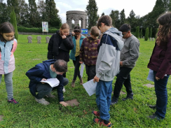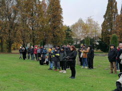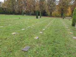 Am Ende der Veranstaltung legten die Schüler*innen gelbe Blumen auf die zahllosen Grabplatten ab: Fast 2200 Kriegstote haben auf der Kehler Kriegsgräberstätte ihre letzte Ruhestätte gefunden, darunter viele Soldaten, aber auch Zivilisten, überwiegend (oft junge) erwachsene Menschen, aber auch einzelne Kinder.