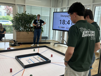 Am Samstag, den 24.05. fand in Waldkirch der Regionalwettbewerb der World-Robot-Olympiad Saison 2025 statt. Zum ersten Mal waren auch Teams aus dem Einstein dabei: Unsere Teams "Einsteins Engineers" und "Zweisteins Engineers" traten in der Kategorie "Future Engineers" an, in der es um die Entwicklung eines eigenen autonomen Roboterautos geht, welches einen vorgegeben Parcours meistern soll. Gegen eine harte Konkurrenz mit mehrjähriger Erfahrung (nicht nur aus der Region!) erzielten die Teams dennoch einige Erfolge. Diese hätten auch größer ausfallen können, doch das Glück war nicht auf der Seite unserer Teams. Schließlich reichte es für den 4. Platz (Einsteins Engineers), sowie den 5. Platz für Zweisteins Engineers. Wir nehmen wertvolle Erfahrungen mit und freuen uns bereits auf die nächste Saison!