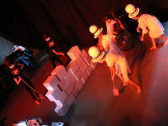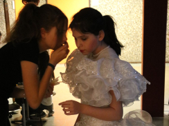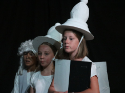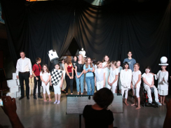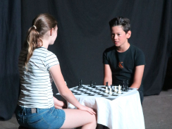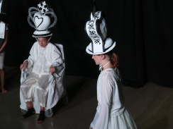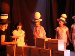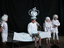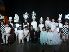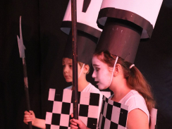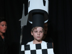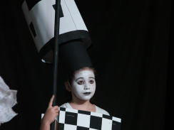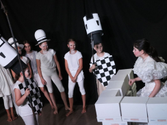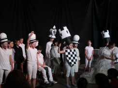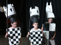 Inhaltlich ging es um eine märchenhaft, komödiantische Romeo - und - Julia Variante. Angesiedelt war die Liebesgeschichte in der phantastischen Kulisse eines Schachspiels. Für zwei verfeindete Königreiche mussten entsprechende Kopfbedeckungen in Schwarz und Weiß gestaltet werden.