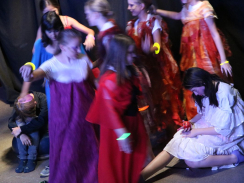 Schüler und Schülerinnen verschiedener Klassenstufen arbeiteten mit. Es gab viele gestalterische Herausforderungen beim Bau der Hüte. Die Hüte mussten groß und stabil sein, durften aber nicht den sich bewegenden Akteuren vom Kopf fallen. Jede Darstellerin bzw. Darsteller hatte eine ganz eigene Kopfform, sodass jeder Hut teilweise aufwendig angepasst werden musste.